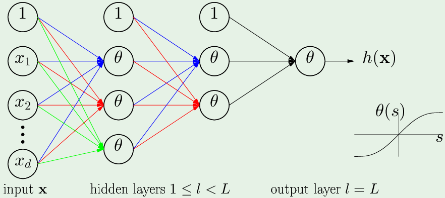 网络全部的权重 $\mathbf w = {w_{ij}^{(l)}}$ 决定了一个假设 $h(\mathbf x)$ (输入到输出的映射)