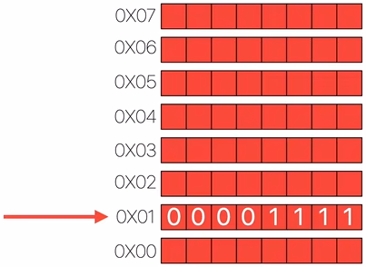 0x01will be written into the register of the EEPROM chip (? Not sure), and the data0x0Fwill be stored in the memory.