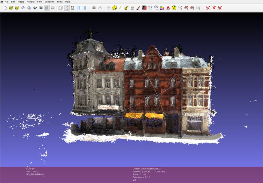 Import the result point cloud “results/dtu/points/scan9.ply” into MeshLab: