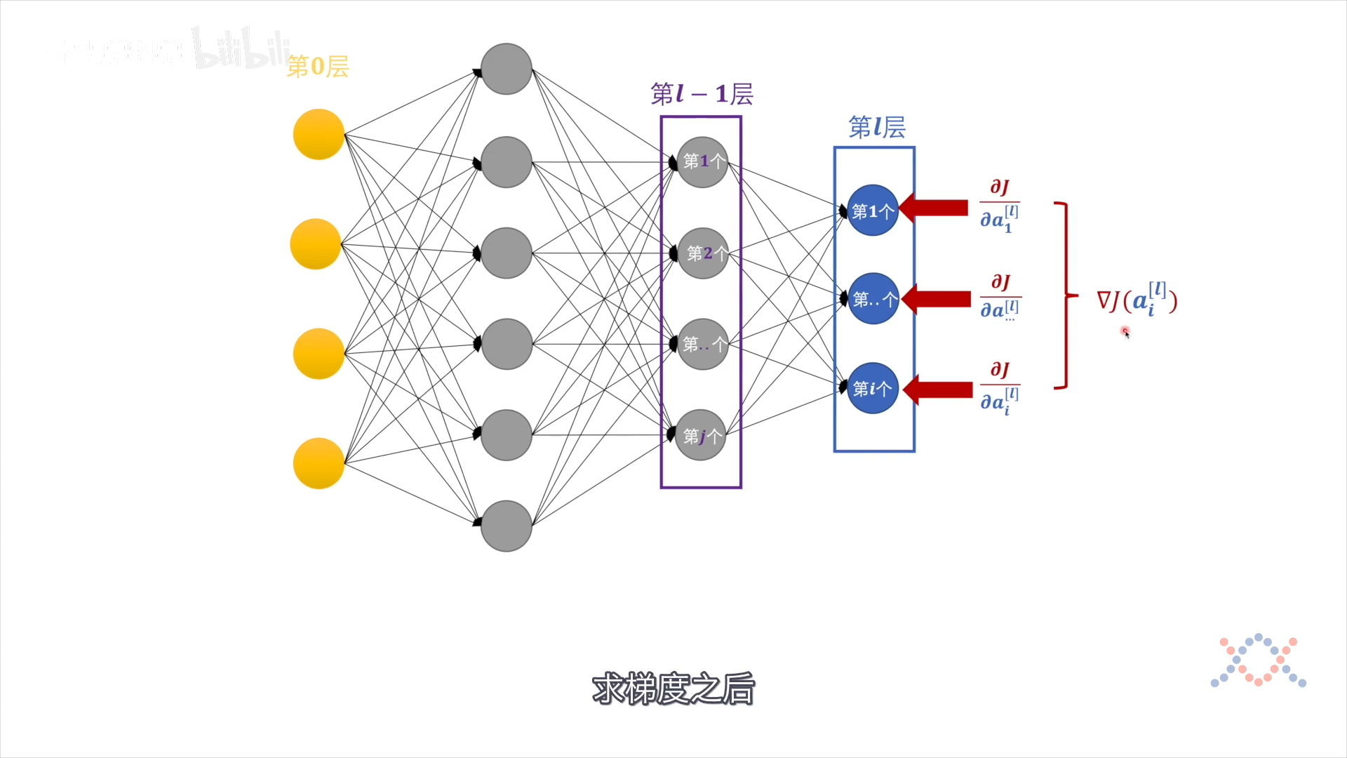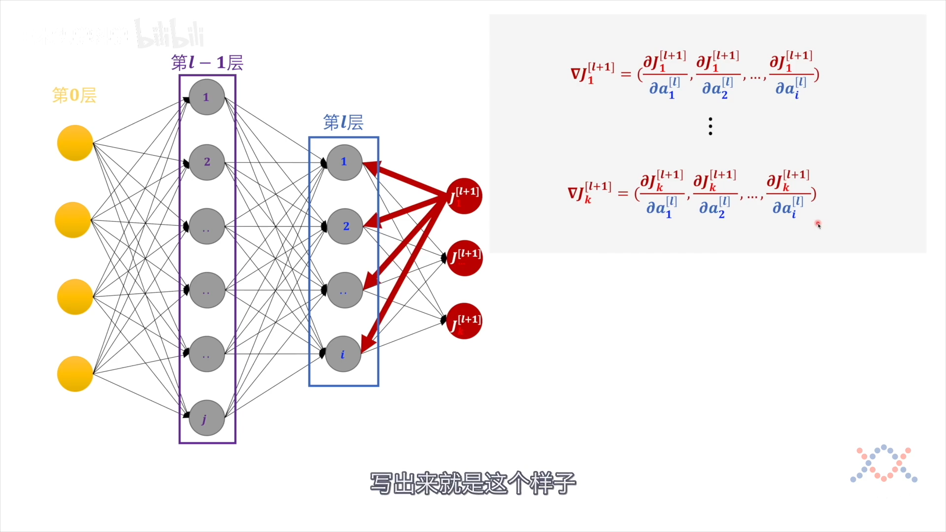 最后$\nabla J$的各项都从输出层 $a$ 开始求导(链式求导):
