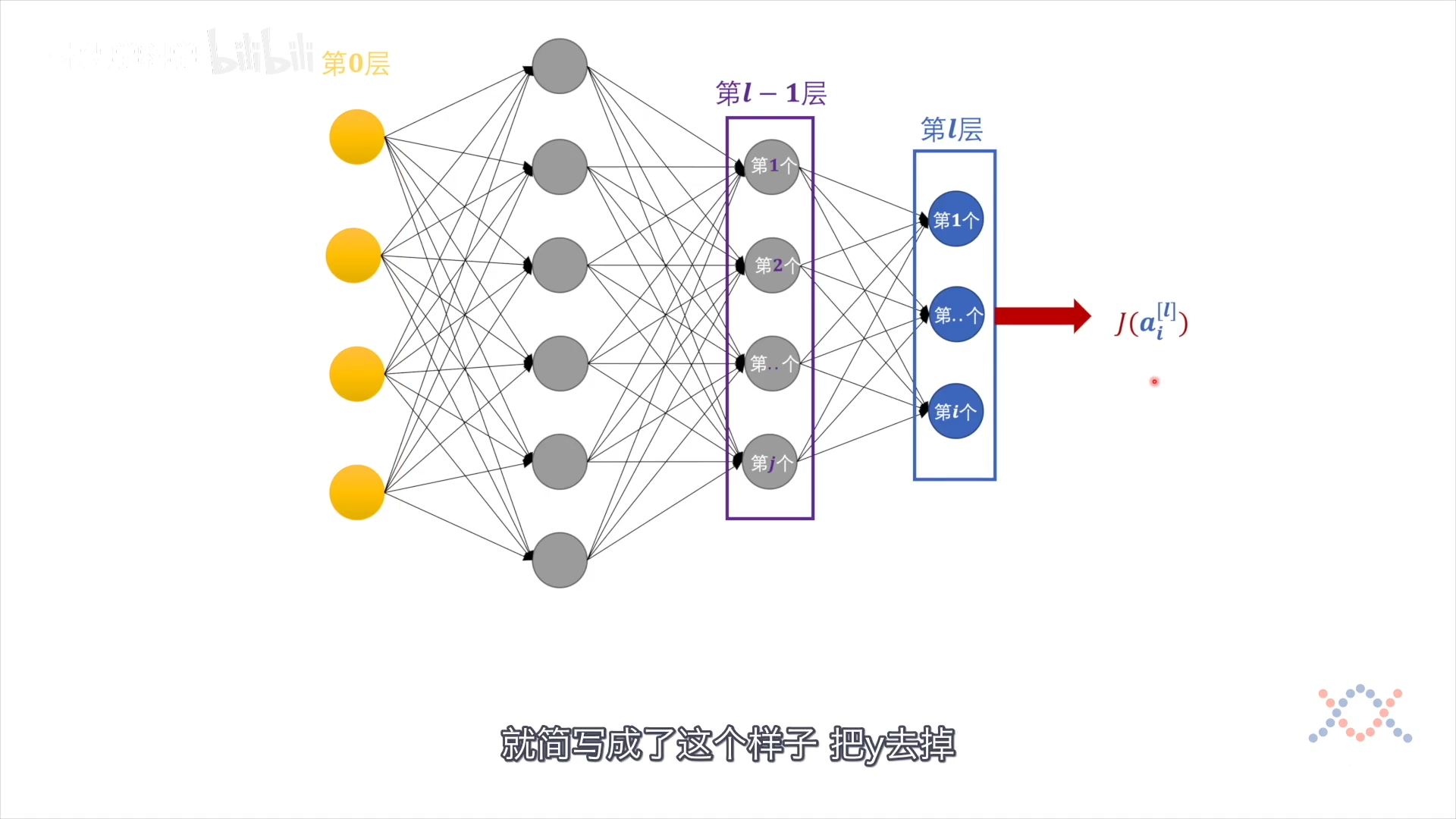 输出层的损失函数:$J(y,a^{[l]})$,y是label,(k)是第几个样本: