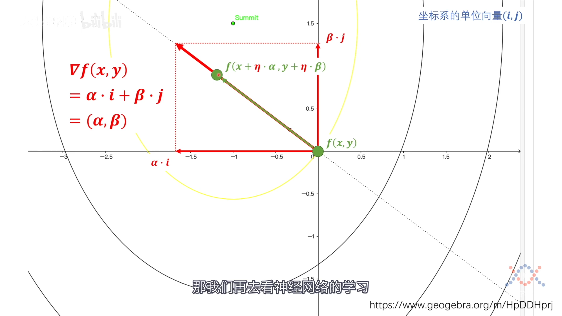 梯度的反方向就是要找的向量方向:数值减小最快的方向。 梯度可以在i方向和j方向上分解,对于点(x,y)沿变化率最大的方向变化就是在i和j方向上同步变化。