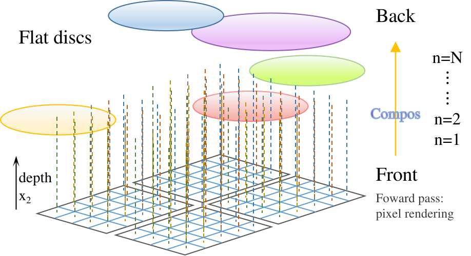 Then the Gaussian center’s ND coordinates are scaled back to the screen size, yielding pixel coordinates ๐โ’โโแตขโโ represented with clip coordinates as: