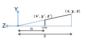 $$ \begin{cases} y’=\frac{n}{z}y \\ x’=\frac{n}{z}x \\ z’=unknow \end{cases} $$